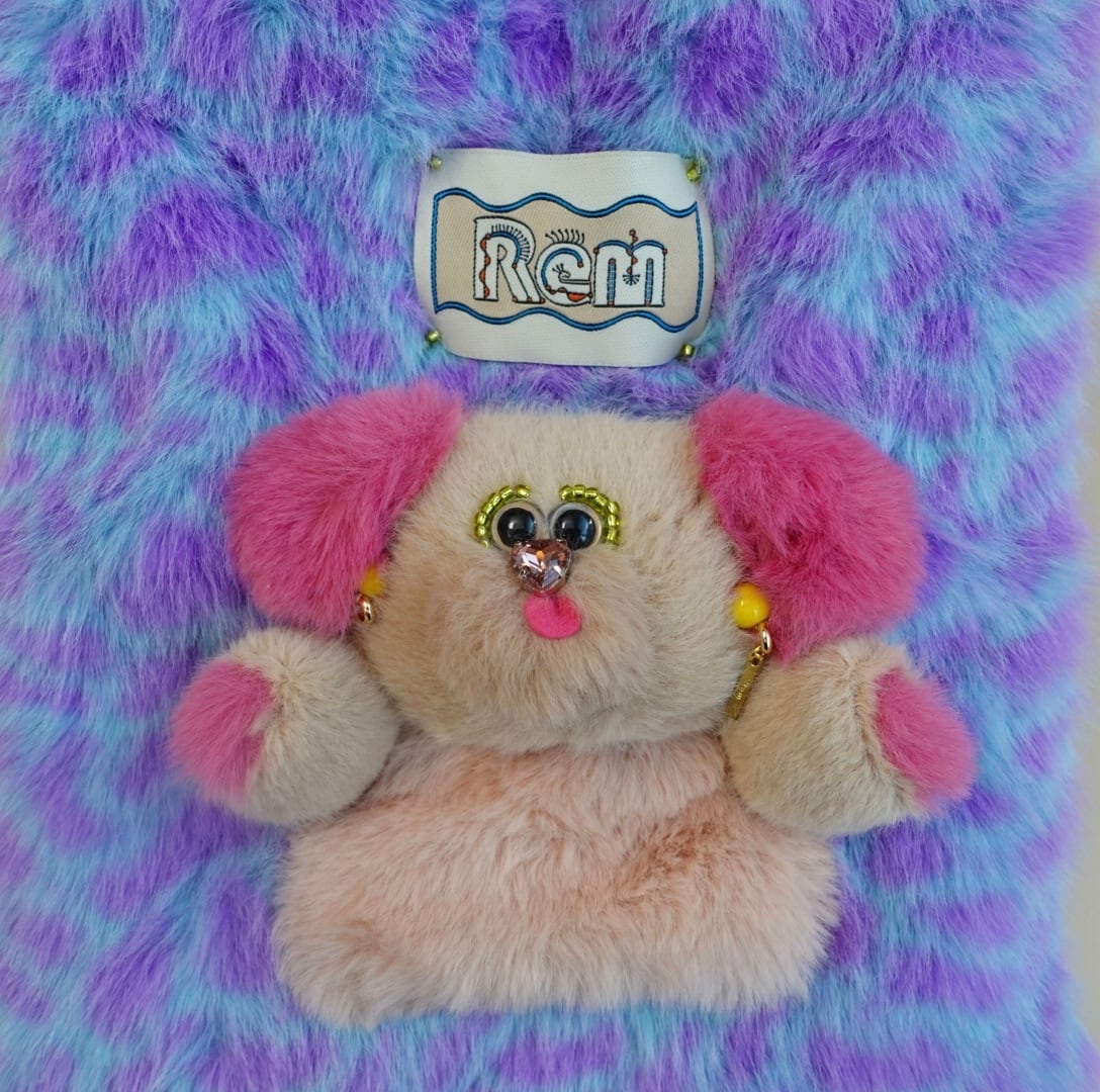 ピアスを着けられるぬいぐるみバッグ(いぬ・パープル)